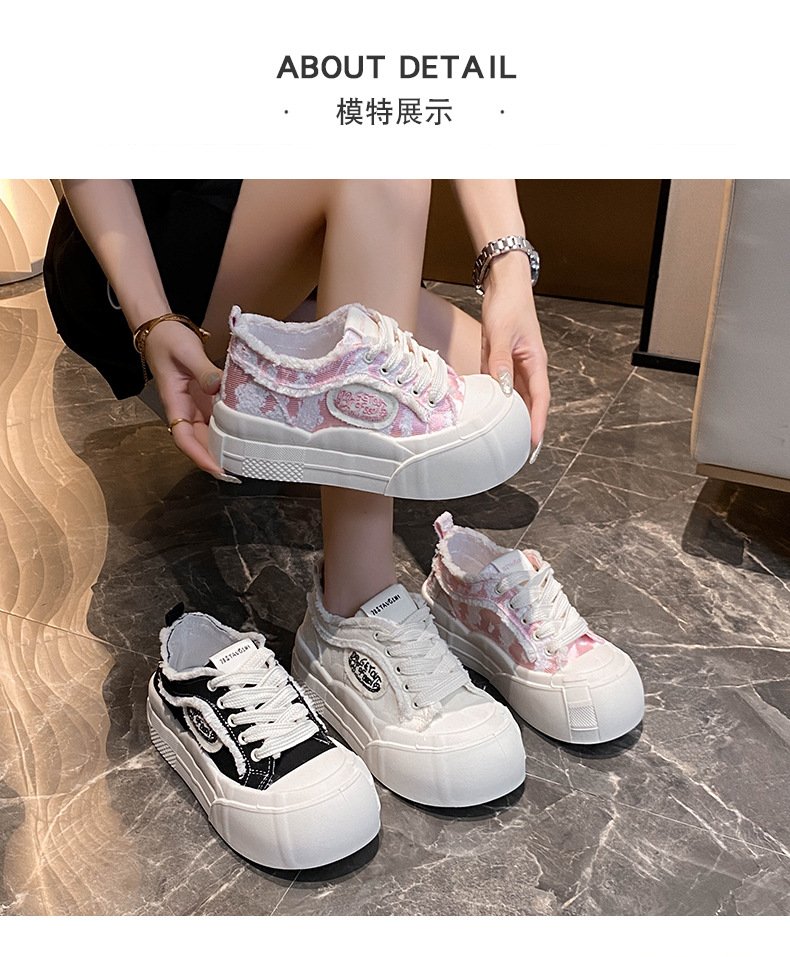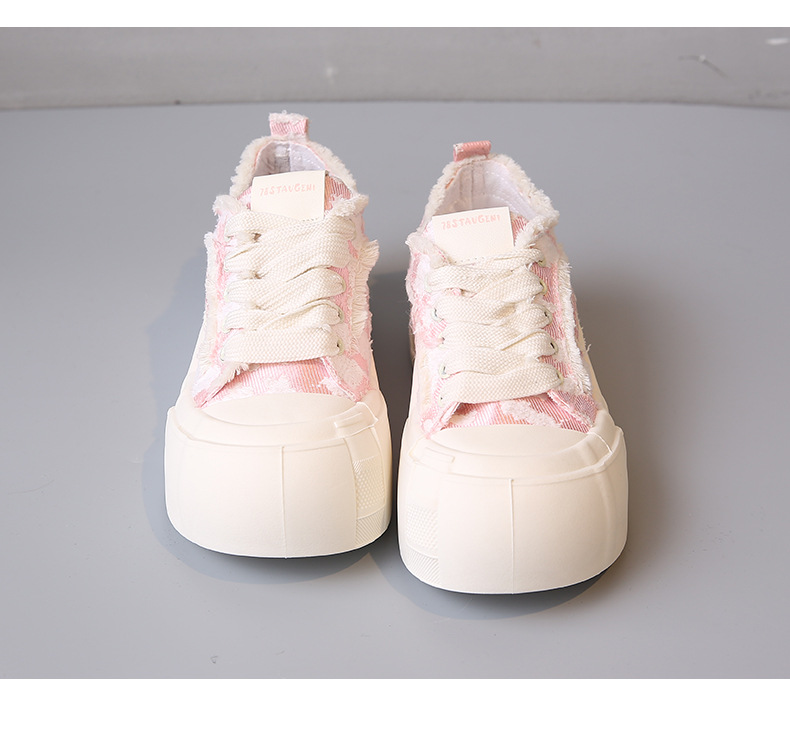 Thick-soled High-rise Low-top Canvas Shoes Women's 2024 Spring And Summer New White Shoes All-match Student Sports Casual Board Shoes Tide
