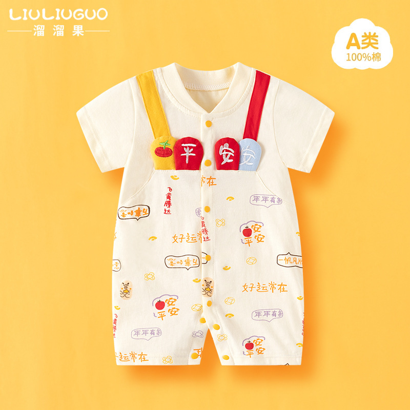 Yoyo Fruit Summer Short-sleeved Baby Jumpsuit Cotton Baby Khaka Cartoon Jumpsuit Thin Cross-border For Summer